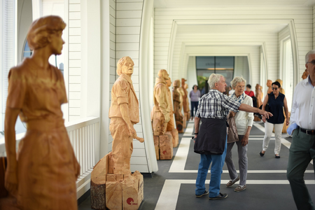 In the entrance to the Tamina thermal water world the visitor is met with a parade of famous Swiss people - from Henry Dunant, the founder of the Red Cross, to the Engadine painter Giovanni Segantini, from Marie Tussaud, the founder of the wax figure museum, to the judge Carla del Ponte. The Zurich artist Inigo Gheyselinck carved them all for the Swiss Association Forests and Wood and the Federal Office for the Environment with the idea of drawing attention to the unused Swiss forests. Thus, one learns that forests, when left alone, do not become healthier, but rather overmature. The Swiss Wood Association decided to commission these artworks instead of making a TV commercial. They have caused a bit of a sensation in Switzerland. (Foto at the end of this article)
