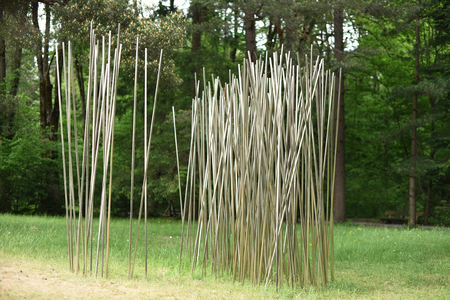 Heidi Gerullis works with chrome-plated steel and aluminum and creates delicate bamboo forests and folds from her materials.Â