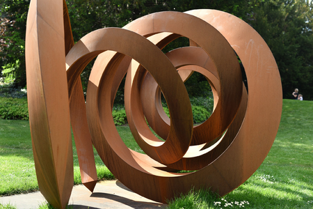 It is interesting to see how many sculptors cultivate their preference for the industrial material of steel - sometimes rusty, sometimes not. Everyone seems to want to demonstrate in their own style, how masterly they can bend, knot and otherwise artistically form the supposedly hard alloy, which in reality is quite soft. Riccardo Cordero creates quite constructionally complex shapes, while Martina Lauinger makes knots. Pieter Obels forms steel into spirals, Sonja Edle von Hoeßle makes endless loops which balance artistically. With his finely worked steel shapes, James Licini celebrates the perfection of the right angle. For Thomas Röthel steel can take the form of a seesaw, knots, a broken pillar or a sail filled with wind and he lends the material a dancing quality.