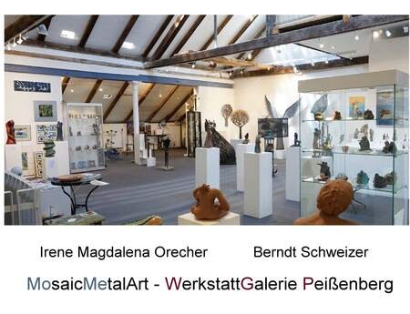 In unseren Werkstätten entstehen Skulpturen, Metallkunst, Mosaikkunst und Malerei. Ungewöhnliche Kombinationen von Material und Handwerk, aber auch die enge Zusammenarbeit mit Spezialisten verschiedenster Art ermöglichen für außergewöhnliche Wünsche individuelle Lösungen von der Idee über den Entwurf bis zur Montage vor Ort.