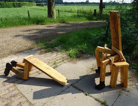 Drager Meurtant (1951, artist alias of Gerard Rutteman), has since young age interest in art. Early on much creativity went into his veterinary-biomedical profession and also did find an outlet in poetry. At the age of 61 he became 'self-crowned' visual artis: sculptures (assemblages), collages, graphics and paintings became part of the spectrum. As autodidact and with experience in carpentry, natural materials (wood, stone) in addition to construction material are at the basis of his assemblages. Much of the basic elements are from demolition- / remnant materials ("recycling art"), some are 'objets trouvés'.