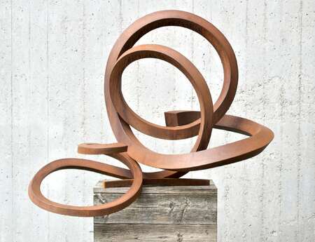 Faxe Müller schafft überwiegend Skulpturen aus CORTEN-Stahl, Stahl, Bronze oder Holz.