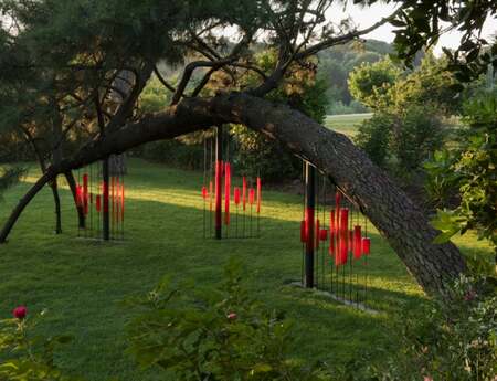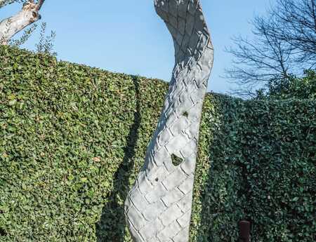 Janine’s oeuvre is multifaceted and ever-evolving; she uses a variety of mediums ranging from traditional bronze, clay and glass to the more unusual rubber, hemp, water, sound and even plants. Works expand in scale from handheld to monumental sized sculptures, land art and sound installations. Janine is inspired by the contrasts and juxtapositions found in humans, nature and space. Interactions between these elements are at the core of her works, time and space are themes that mark the journey and evolution of her oeuvre. Participation between artist, viewer and art is fundamental to Janine.
