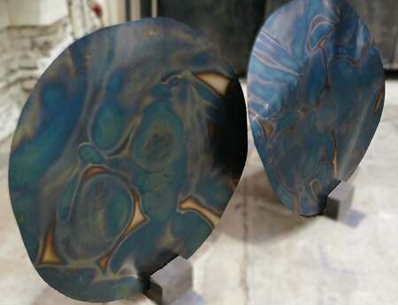 1. Running, Fleeting Shadows are shadow phenomena, the long shadows of history. The inability to depict these shadows is transformed here into burned-in time - the shadow phenomena - through physical impact (1400°) on the material.