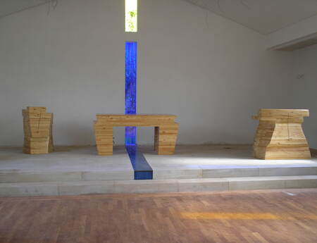 Die Skulpturen stehen fest im Raum, sind Stelen artige Raumzeichen, gestenhaft gebogen, gekrümmt, getürmt oder ausgelegt, voluminöse Kapseln oder einfach nur Bruchstücke, Artefakte aus einem größerem Zusammenhang. Gunther Gerlachs Arbeiten sind keinem eindeutigen Stil zu zuordnen, gerade weil sie sich modischen Trends widersetzen und mit einfachem Handwerkszeug auskommen. Auf der Suche nach Form und Formung wollen sie Nichts weiter als den Betrachter in eine eigene Welt ziehen.