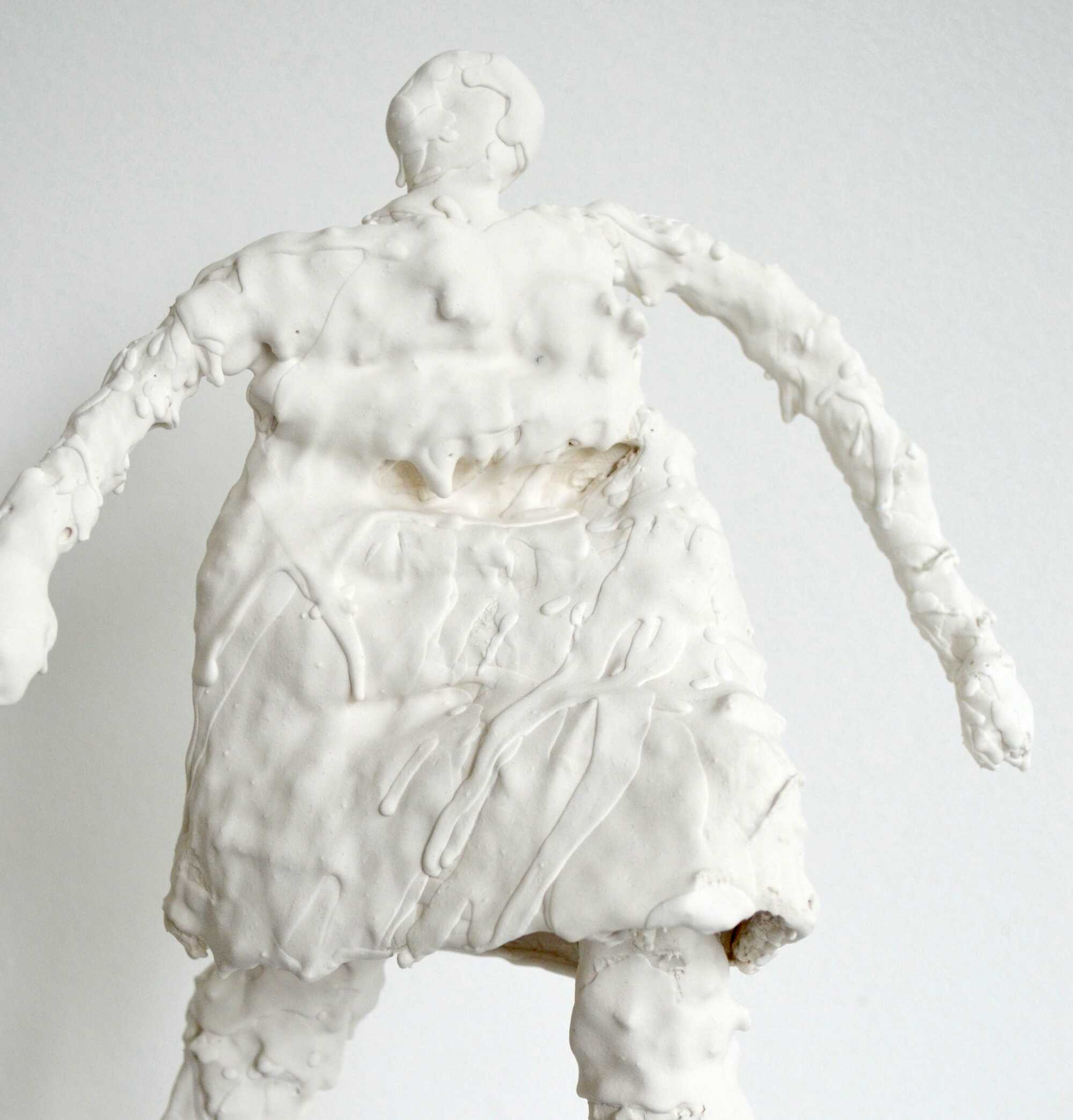 Seen from a low perspective, this woman figure shows herself in a confident pose.
