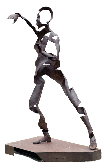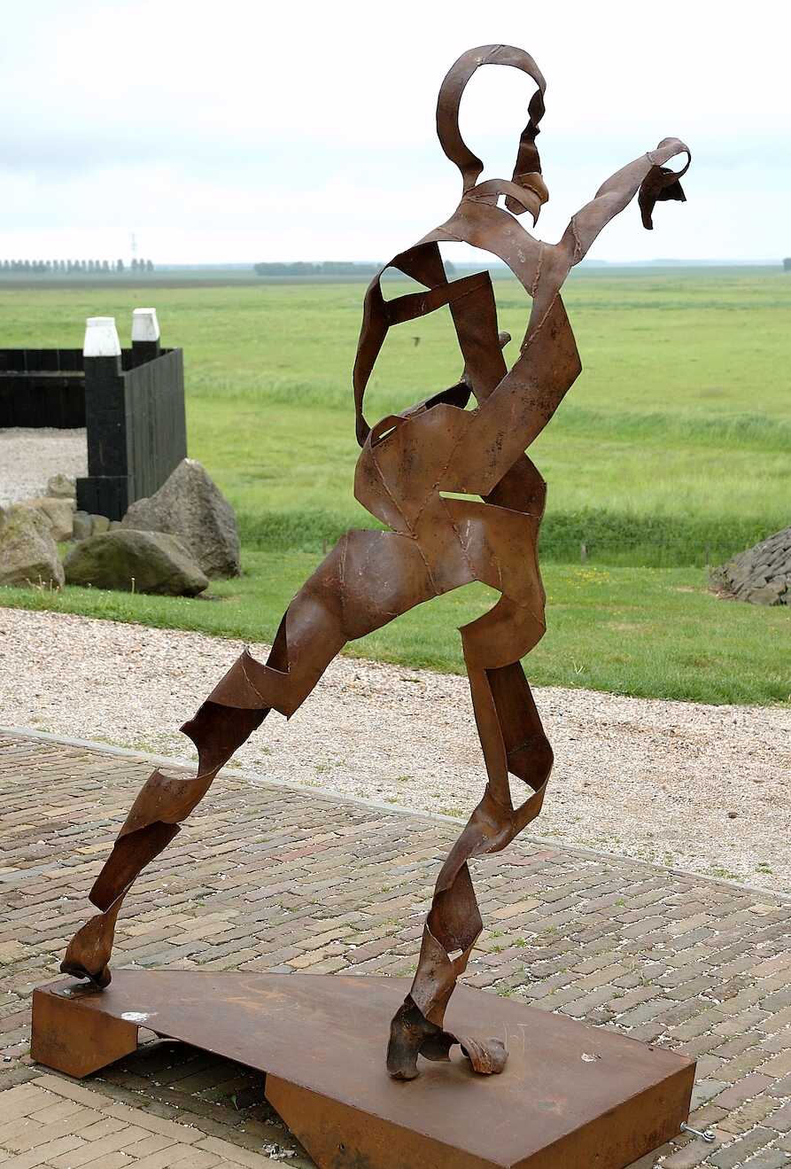 Ellen Harmsma, the dancer, improvises while dancing with the sculpture. Her movements are a reaction on the fact that the sculpture is made of steel; frozen in its movement. She is inspired by the moving lines in the sculpture and its expression, in such a way that both steel and human skin are merging together. It is her experience as a sculptor that gives her the ability to reveal hidden qualities of the sculpture. Like dance can reveal music.