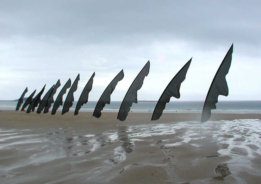 Fahnentuch und Fiberglasgestänge.