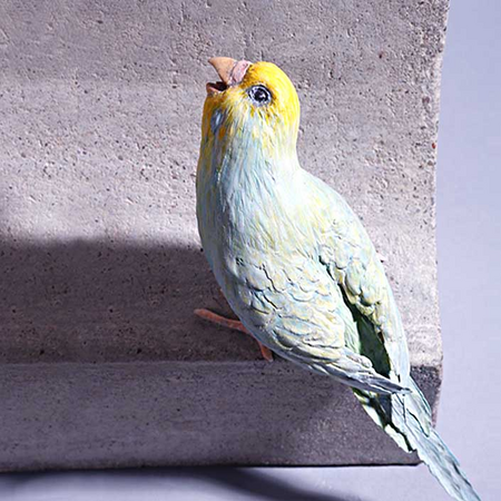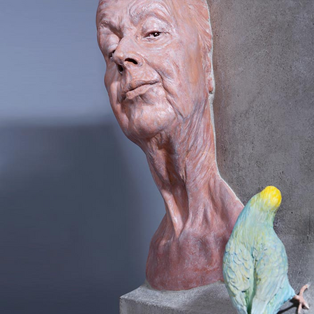 In this sculpture my mother has "a bird", but in fact it is my bird, the magnificent budgie called "Manfred". In fact our whole family has "a bird"- and not just one. Manfred has his own bird - GĂĽnther. My mother mimicken Manfred and Manfred imitates my mother.