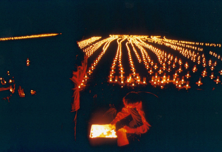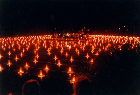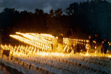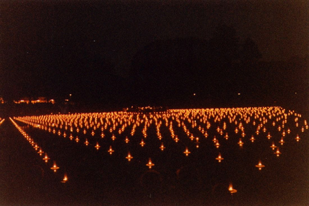 At night the warm light of the candles transformed into killing fields.