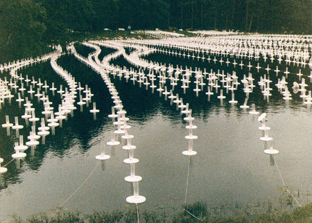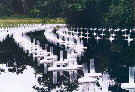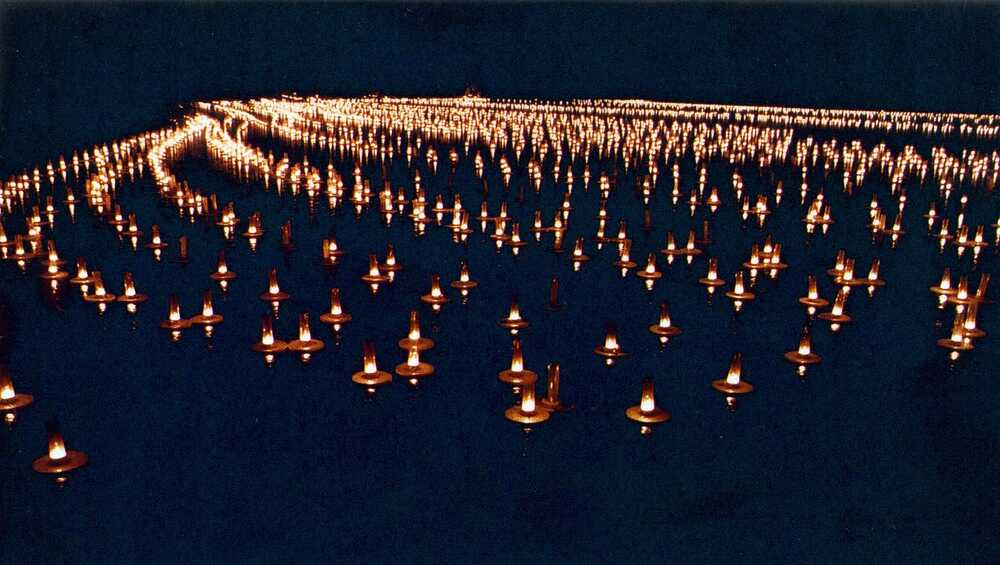 10.000 candles traced on long lines and formed by the wind into patterns in the water of the Doodemankisten lake. As an ode to the island as a stage