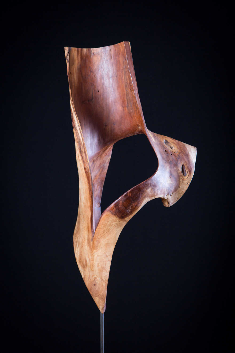 No title 2012-04. Sculpture in cherry wood on iron bar and hard stone pedestal