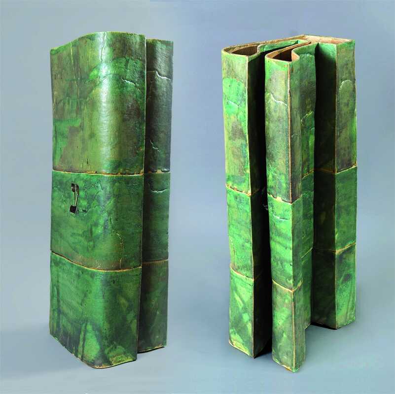 So mündet schließlich ihre Auseinandersetzung mit der Vergangenheit, in die strengen Formen der Schrift-Architektur: Vasen, die Erde, Wasser, Pflanzen und das göttliche Licht miteinander verbinden und Wachstum verheißen. Ihre Plastiken werden zu Bausteinen, zur persönlichen Architektur.