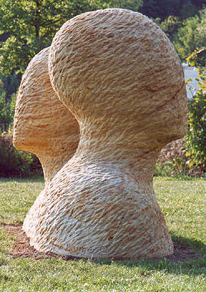 Der Zustand "Allein" wird anhand der Büste eines Paares dargestellt. Obwohl im Schulterbereich symbiotisch, sind die Köpfe jeweils in die andere Richtung gewendet. In der schemenhaften Darstellung sieht es aus, als würden sie aneinander vorübergehen.
