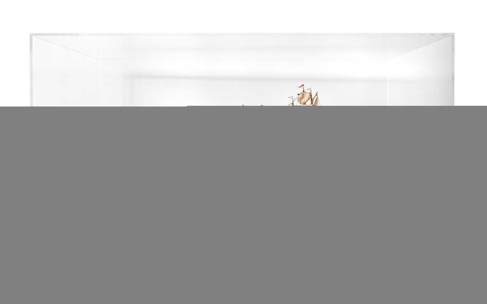 stuffed fawn, black painted steel, etching of dark romanticism, acylic cover, stainless steel