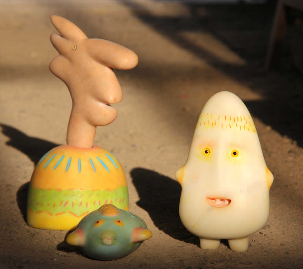 Various marble, painted, pinned, added, carved, cut and refined