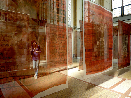 From the same subject, are pictures of colored, antique Persian, Chinese, Western, Arab carpets, combined with contemporary black and white news photos. The concept of distance gives the impression of innocent fields flowers, colorful gardens. Near viewed opens up a world of a very different order .....! Over that his rap lyrics printed, which made young people on the theme 'meeting'. Or poems by writers. These lyrics are about everyday encounters and leave in relation to see the socially conscious pictures again met: a third layer, or a different perspective to look.