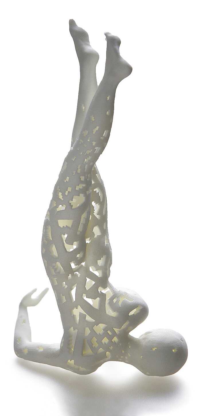 'Gravity sls', polyamide sls 3D-print. Rendering of the 3-D mesh drawing and the final print.