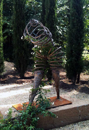 Following from Der KUSS, this piece further develops sculpture’s integration and unification with nature.The Gardener is even lighter and more transparent than ‘Der Kuss’ yet at the same time is also dynamic and powerful. The woman bends to look at the jasmine which grows along and within her leg, and beyond to the roots where its journey inside begins. The effect of the plant climbing within is a ‘Cul de Paris’, a 19th century skirt.