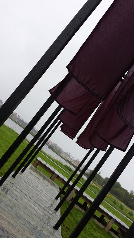 Absent Core is a reference to the way of Zen Buddhism the temples inner world, the core. In this work visitors are led on a journey through blocked corridor and open veranda, partly surrounding the absent core. The repeated row of blocked Noren gates represent the mystic behind entering into the world of Zen the temple with it’s corridors and verandas, courtyard- and the dry landscape gardens the hidden inner world, the unknown behind removable walls of the Shoji paper doors and windows or the Noren that gently moves by a touch or the weather. After each of the five entries one might think, you are there but you are not. The unexpected is still waiting to appear and the past folds gently behind you on the journey. As you are guided slowly further along and higher up to the open veranda, the direction changing and the path leads you along to the steps, that guide’s you down to the ground again. As you turn the Zen garden presents the big ocean... it welcomes you with its inner cam and the previous footpath is the place to rest and reflect to capture the cam of the Zen and joy the end of the journey. gn 2014