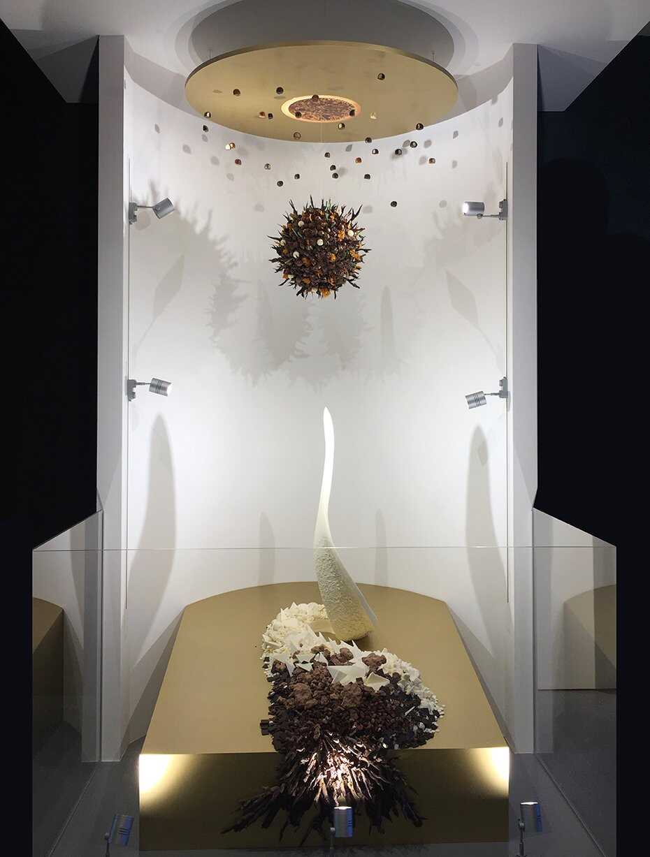 A freestyle chocolate art composition where all the components and possibilities of chocolate using techniques are shown. Combined with the worldwide unique naturally grown chocolate crystal art founded by Gerhard and used from 4 different continents, some aged already up to 9 years.