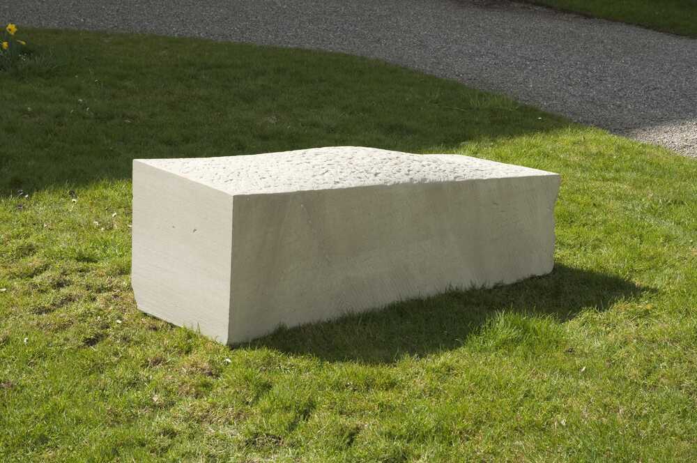 The pregnant coffin is one artwork of a three-part series on the process of dying, saying goodbye, and grieving. A sculpted stone with its subtle 'belly' symbolizes at once birth and the last resting-place after death. Based on this sculpture, Vera Staub then created a transparent installation ('Das Tuch') that only hints at the the contours of the coffin: a shroud made out of synthetic resin, initially flowing softly, later solidified and stiff. The artist traveled the country trapsorting the shroud in a circus wagon from town to town. On public spaces, people are encouraged to visit the wagon, where curiousity and lightheartedness often gave way to a sudden discomfort.Â