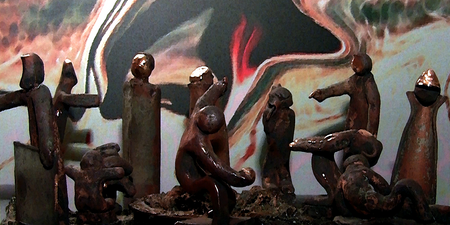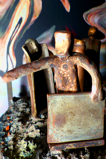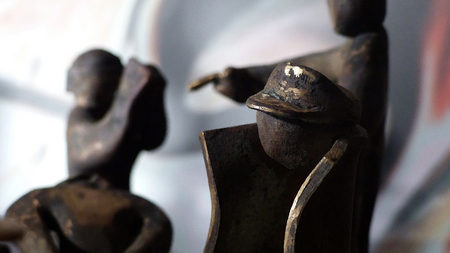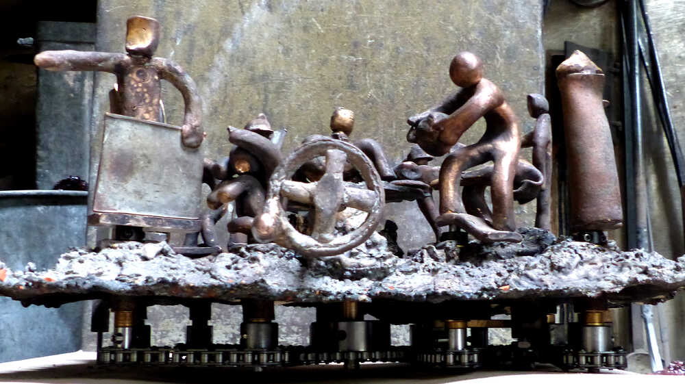 Fast möchte man meinen, dass Geschichte sich wiederholt und die totgeglaubten Geister der Vergangenheit wiederauferstanden sind. Revolutionen versprechen viel - und drehen oft nur das Untere nach oben, ohne dass den Menschen geholfen wird. In diesem mechanischen Kunstwerk aus dem Jahr 2006 sieht man zwölf ausgewählte Beispiele: übliche Faschisten, Putin, Lenin bei seinem Überfall auf Polen 1920, Mao, den Tankman auf dem Tian’anmen-Platz 1989, die Erschießung einer Geisel in Saigon, Guantanamo mit Waterboarding u.a.