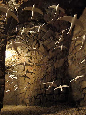 200 Mauersegler aus Porzellan in einem Höhler, Höhler Biennale in Gera