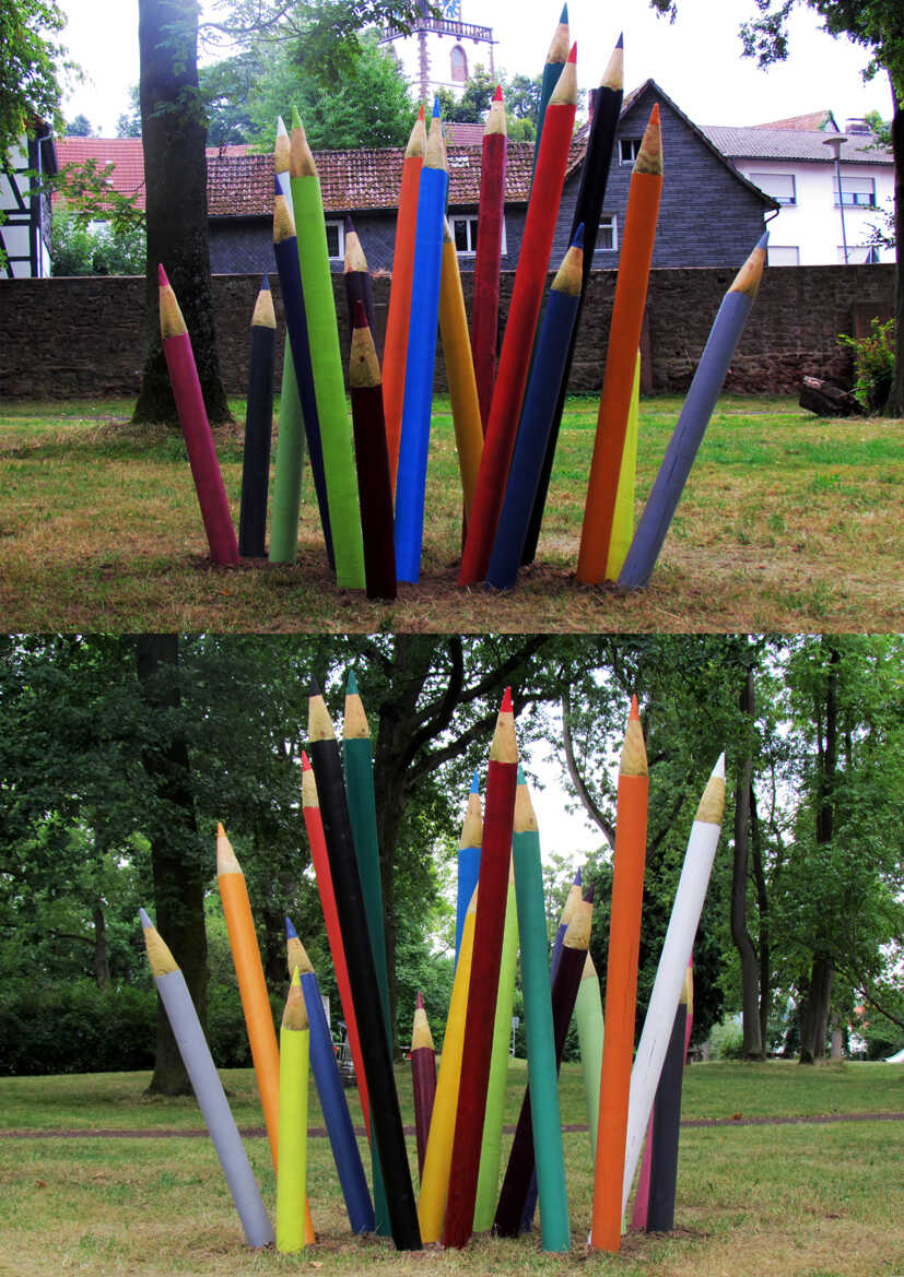 "pencil woods" - Installation im Annapark, entstanden während des 1. Kirchhainer Bildhauersymposiums