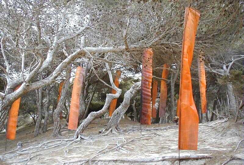 Maltechnik auf Fahnentuch, GFK-Gestänge.