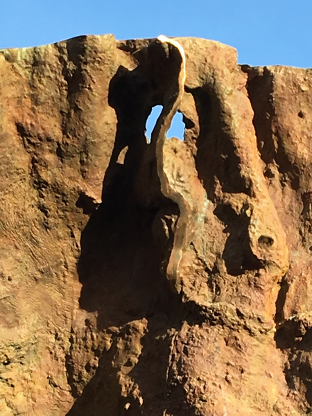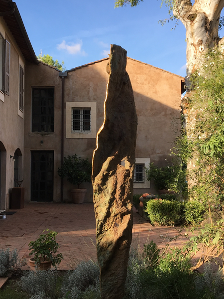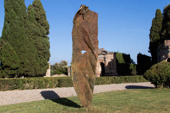the creations derive their forms from the rough surfaces of hypogeic cavities that were once the catacombs of the Eternal City, Rome. The conquest of air, light and green by these cavities transformed into works of art is due to the qualifying action of the artist who, with tenacity, has realised her aesthetic and poetic dream. Eternity I ,II,, III and IV which as sculpture have an objective physical extension, develop the premises of a plasticity intuited as the ‘continuity’ of matter in space (Boccioni) and achieve the goal of emancipation from objectuality (Martini). At the same time, in the context of contemporary sculpture, they enact the miracle of encompassing the zero time of Eternity.
