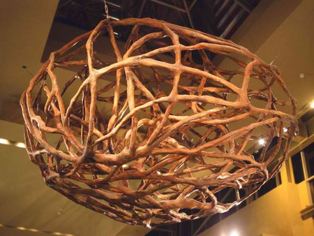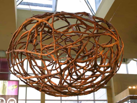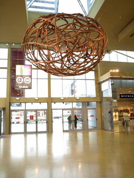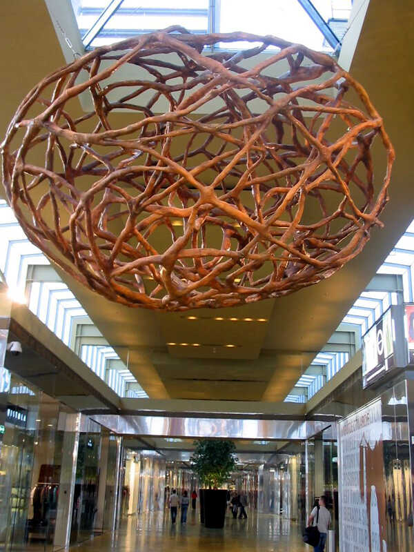 The sculpture refers to the mutual relationships between the customers an salesmen.