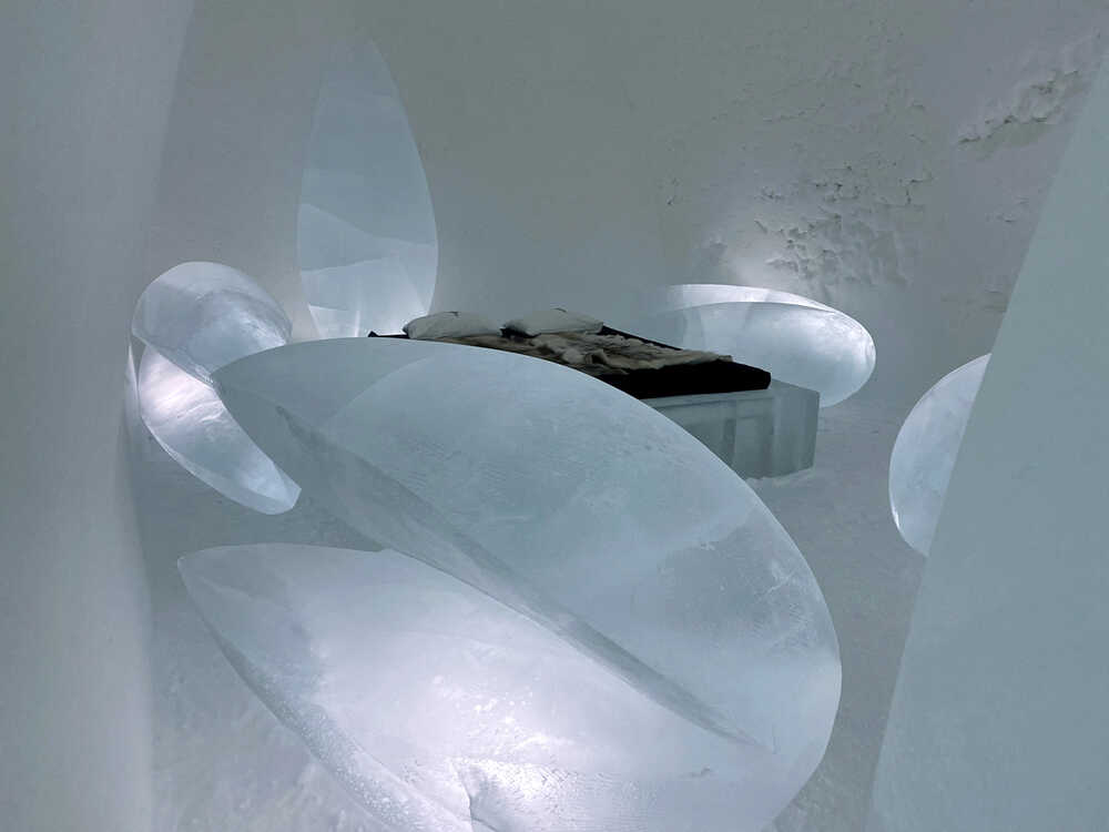 Suite mit 8 Skulpturen aus Eis, ICEHOTEL Jukkasjärvi, Schweden