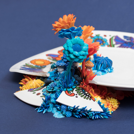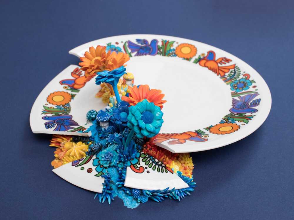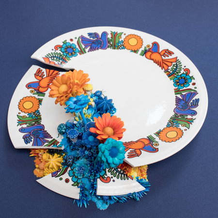 It is a plate that belonged to my mother and that I have used for as long as I can remember, so when I broke it accidentally, it was painful at first and then inspiring for my work because of its beautiful design.