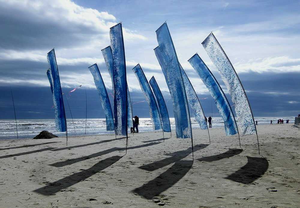 Maltechnik auf Fahnentuch, GFK-Gestänge