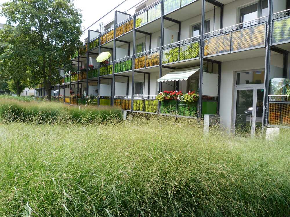 Balkongestaltungen aus Sandwichglas | zwischen den Scheiben sind in Punkte aufgelöste Abbilder meiner in Glas geblasener Portraitköpfe | Projekt Kopfjäger | welche aus ca 5 Meter Entfernung wieder für das menschliche Auge erkennbar werden |