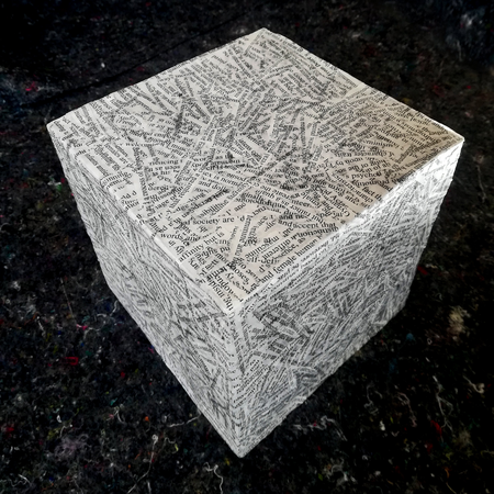 For "125451 Words: A Thesis submitted for the Degree of Doctor of Philosophy" I have painstakingly glued together, layer after layer, the shredded and jumbled words that once formed my thesis. It took me four years to select, order the existing knowledge on the topic and to formulate my contribution. I spent interminable hours determining the right boundaries between static order and incomprehensible chaos. Through shredding and reshaping my thesis into a still and impenetrable object I have drawn attention to the fact that the boundary between order and chaos is constantly in a state of flux and forever being redrawn.