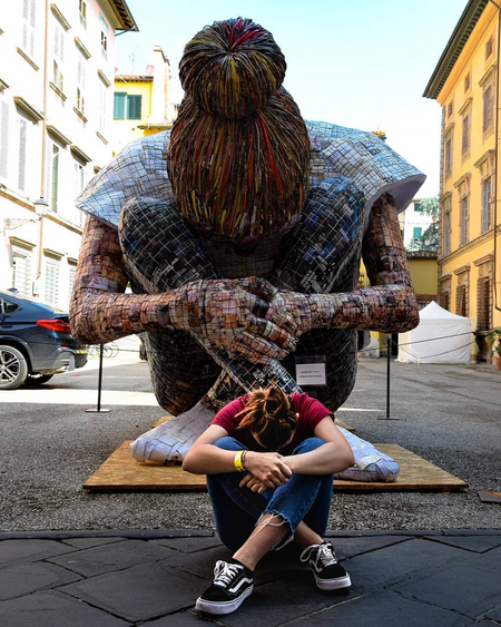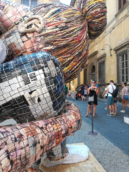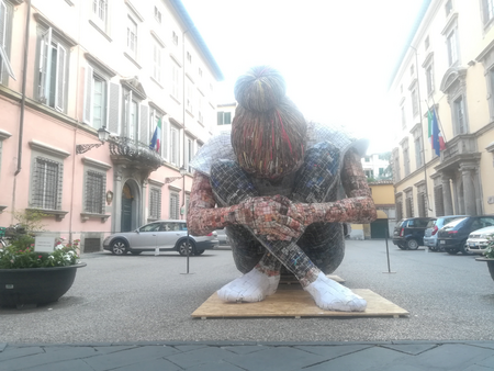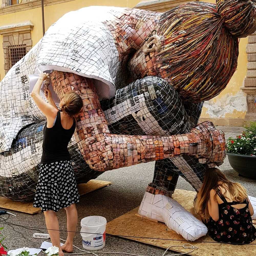 The figure’s outer layer, made of parcels of text and images, aims at capturing the complexity of human beings, as well as placing subjectivity in correlation with social and cultural factors. In this project the fragments of knowledge become part of the figure; they seem to flow into each other to form a new whole. This new whole, however, is never static or finished. As an innumerable amount of events and encounters concur to form and shape every individual one could also say that human beings are made of various fragments (memories, images, text and people we meet) and therefore made of parts of others. Accepting the fact that we are made of parts of others, may involve dealing with a subjectivity, which expands beyond the subject itself to include otherness and chaos within.