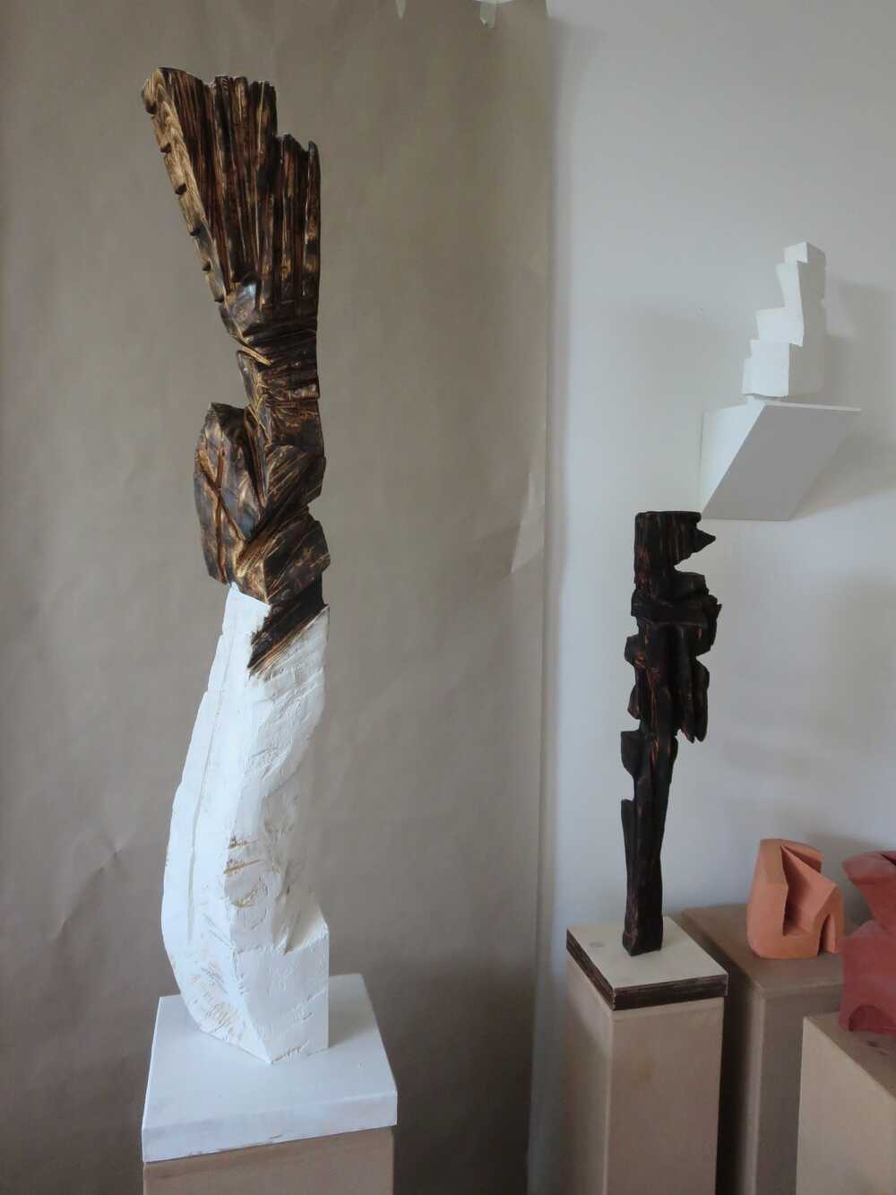 Holz,geschwärzt, weiß gefasst