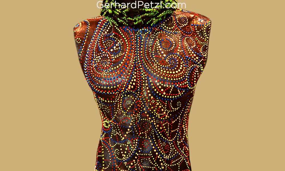 The result of a Live-Performance with chocolate and multiple colours used. African themed design.