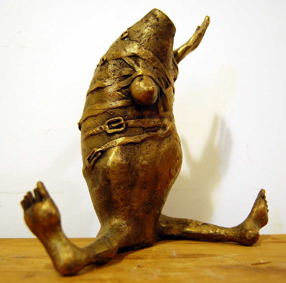 Starting from the human dimension, each character – which may become an exemplary model to be meditated upon – makes reference to fundamental life experiences in a place (universe) dominated by the everlasting omnipresence of frustration, whose existence in time is intended to be anticipated. Therefore, these works are materialized in the visual plan of the imbalance between inner- and outer-self.