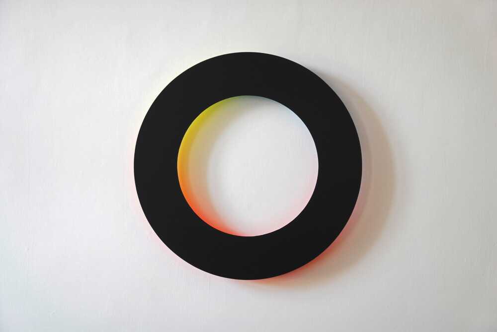 Der Immaterialität des Lichts und seiner färbigen Lichtbrechungen kommt der sehr dünne, beinahe nicht greifbare Kreis entgegen, dessen Kanten schräg abgefast sind, um ihn verschwindend dünn und als Körper kaum wahrnehmbar zu machen.