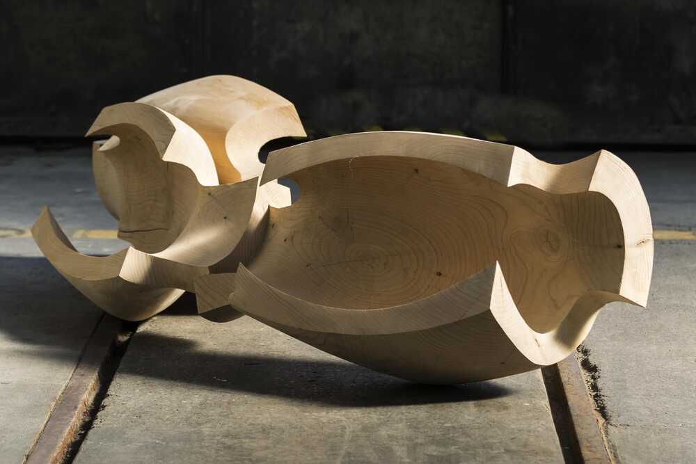 Like a fossil dug from Triassic sea deposits; old, quiet, calm, wise, but the three parts find together in tension as they want to move or struggle for new positions. «One» means undivided, entity; «two» means divided, polarity and «three» («tri»; Greek prefix for threefold) means completeness, perfection which is only achieved by moving the antagonism. As bowl-like structures the parts are open for new contents.