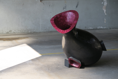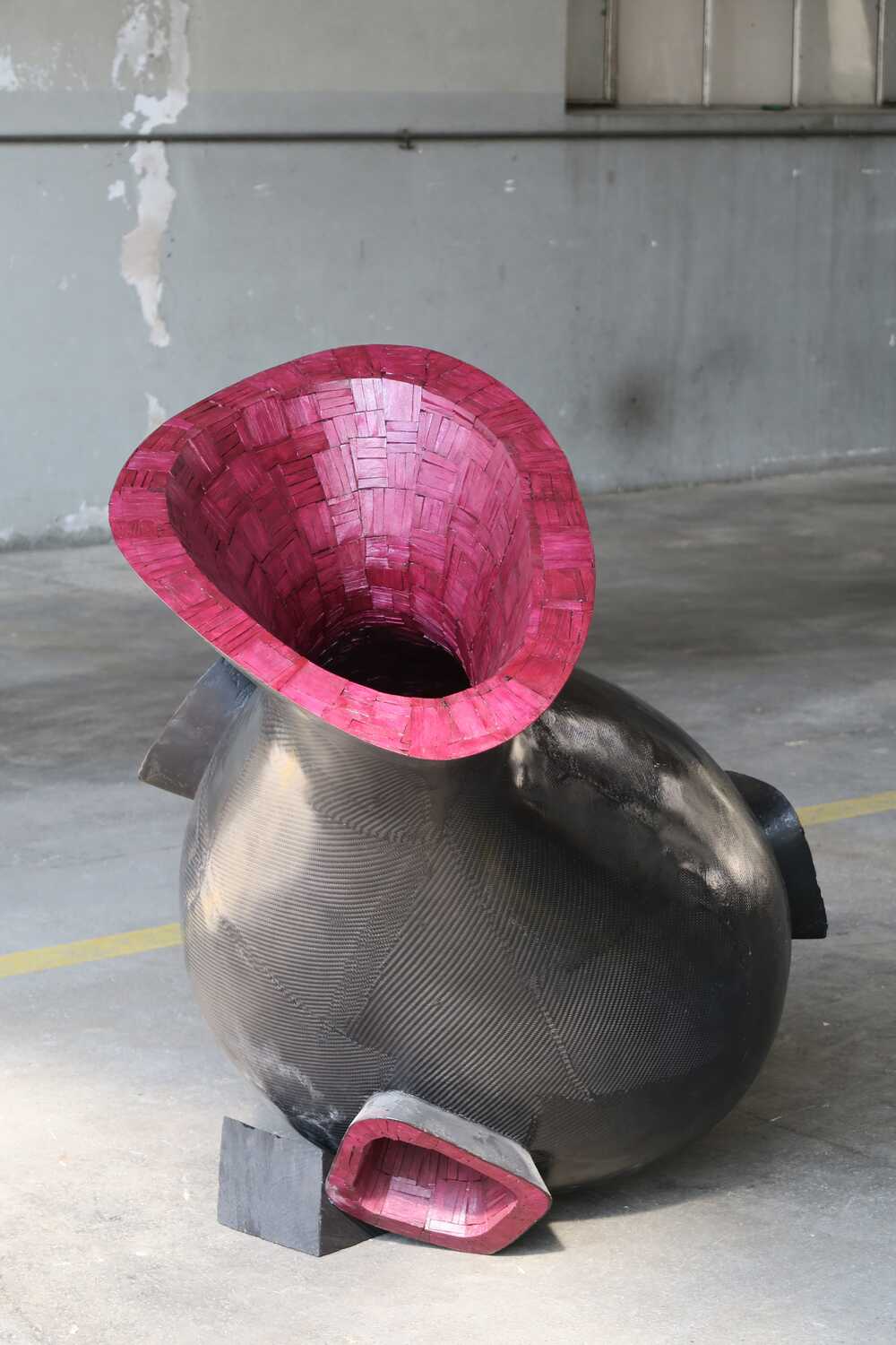 No physical content; mere space – emptiness. Your thoughts will carry you into your own world, to your dreams and your necessity. The axis of vision created by the protuberances punctures and crosses the inner space. Maybe a ray of light falls into the dark through one of the openings and subtly illuminates the mystical silence.