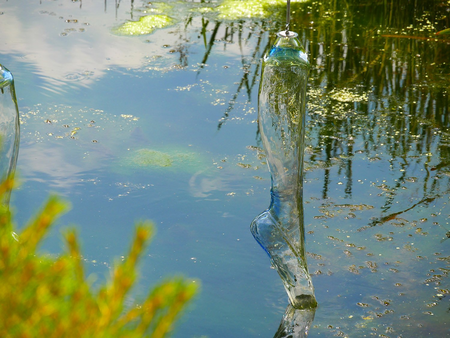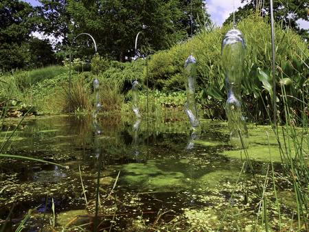 Serie of 8 pieces blown glass, steel