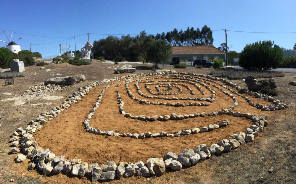 walkable permanent installation. a recreation of an ancient neolithic petroglyph from Knowth West, Ireland, thought to represent the OWl Goddess, symbol of fertility