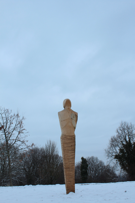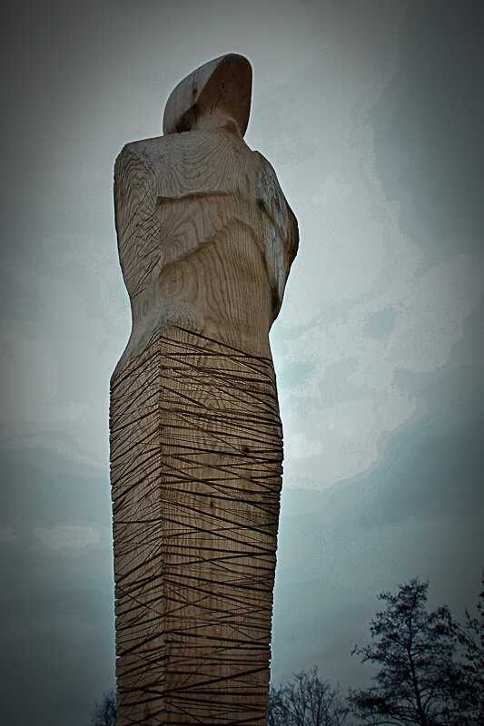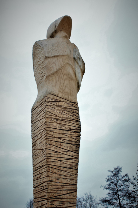 Eine überdimensionale Figur aus Eichenholz.