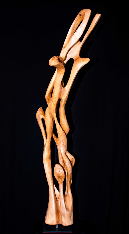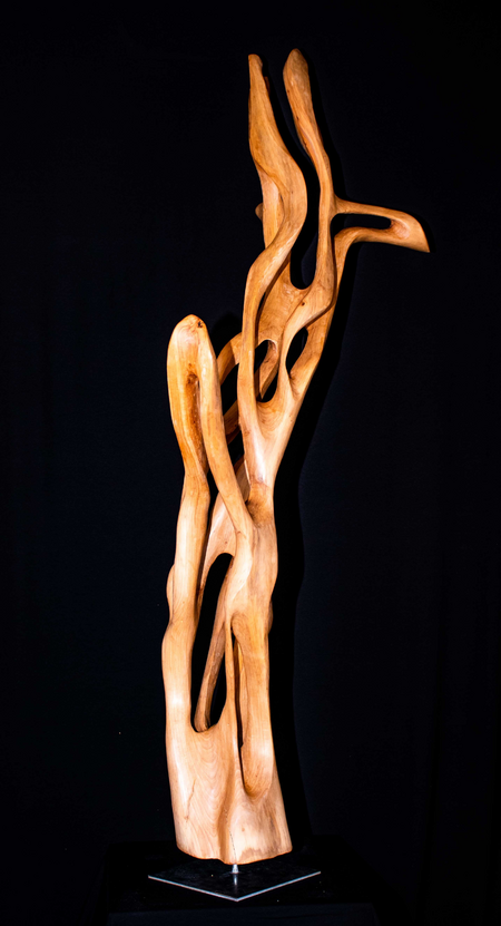 Aus einem Stück Apfelholz (Stamm) - gesägt, mit Bildhauer-Eisen bearbeitet, geraspelt, geschliffen, gewachst, poliert,