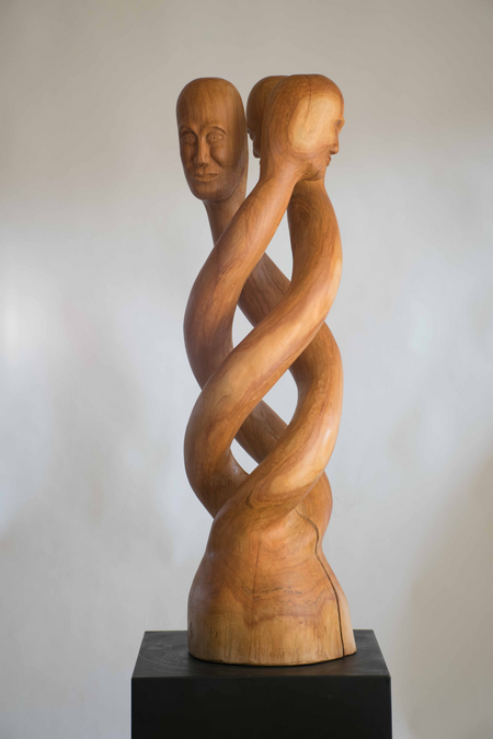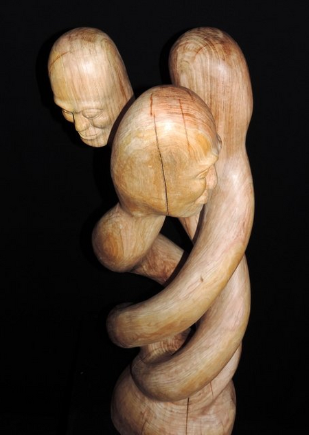 Aus einem Stück Kirschholz (Stamm) - gesägt, mit Bildhauer-Eisen bearbeitet, geraspelt, geschliffen, gewachst, poliert,