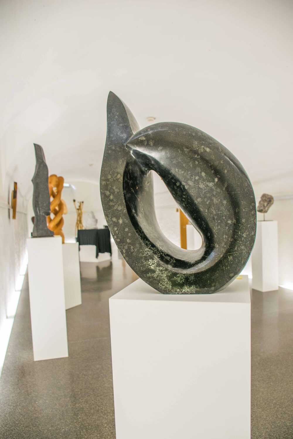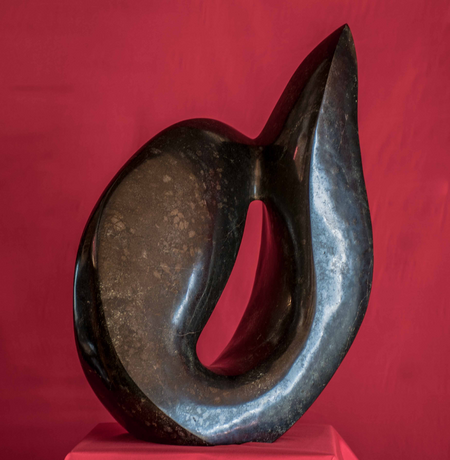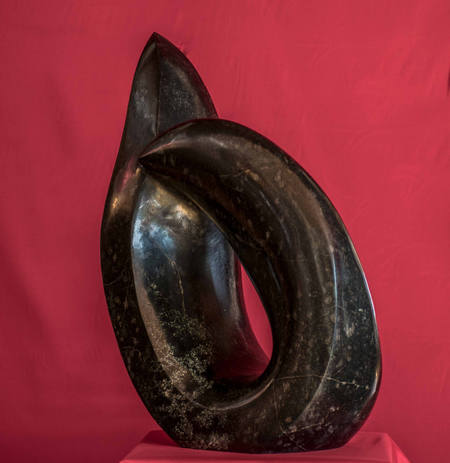 Aus einem ca. 70 kg schweren Diabas-Stein wollte ich eine abstrakte Figur - ein Tänzer oder ein Tanzpaar, je nach dem, was man sieht - schaffen. Für mich ist es eine edle, sinnliche Skulptur, die mit dem besonderen Stein sehr anspricht und fesselt.